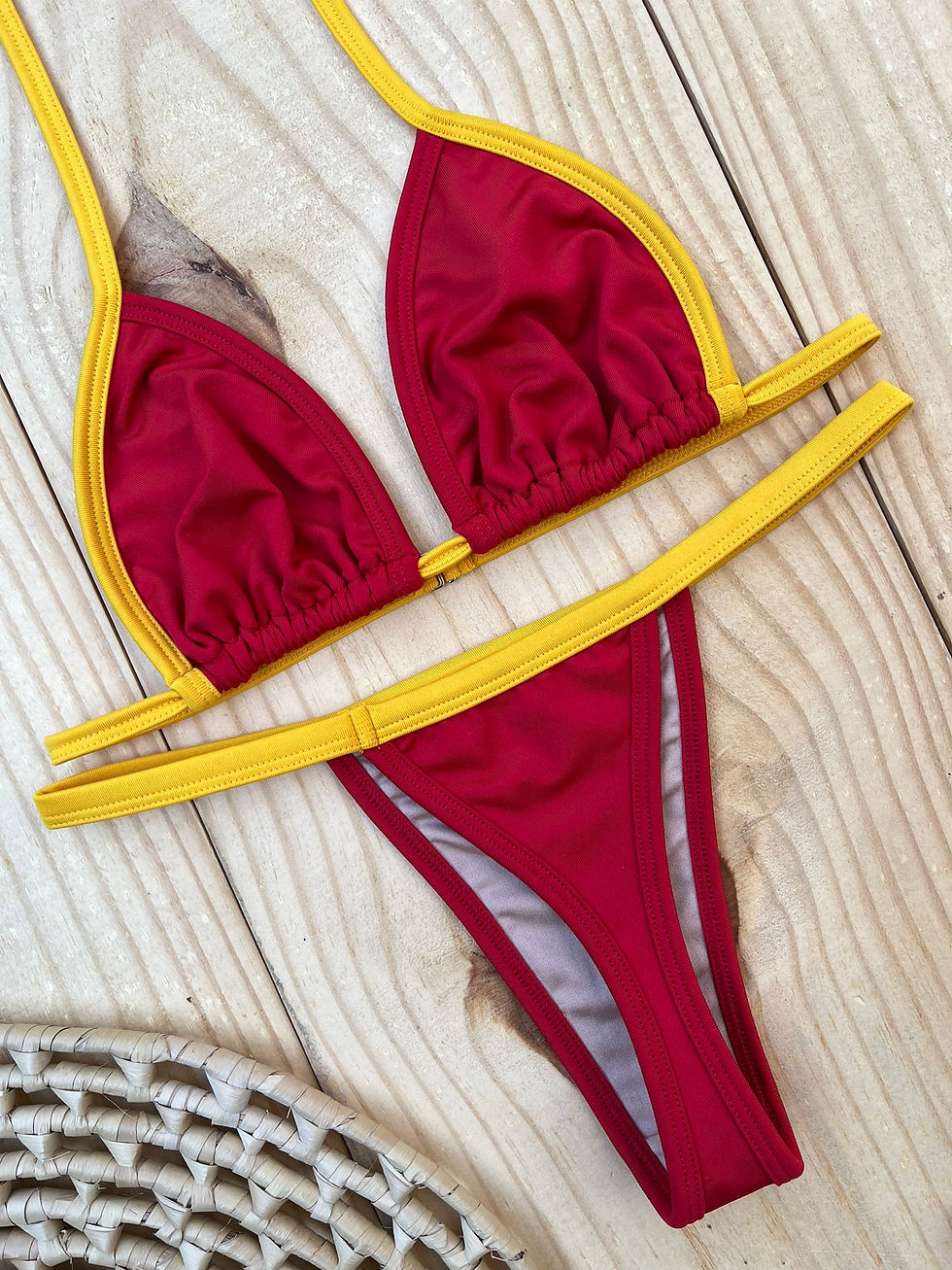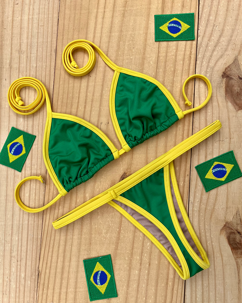 Biquíni Fio Dental Verde com Amarelo Kelly